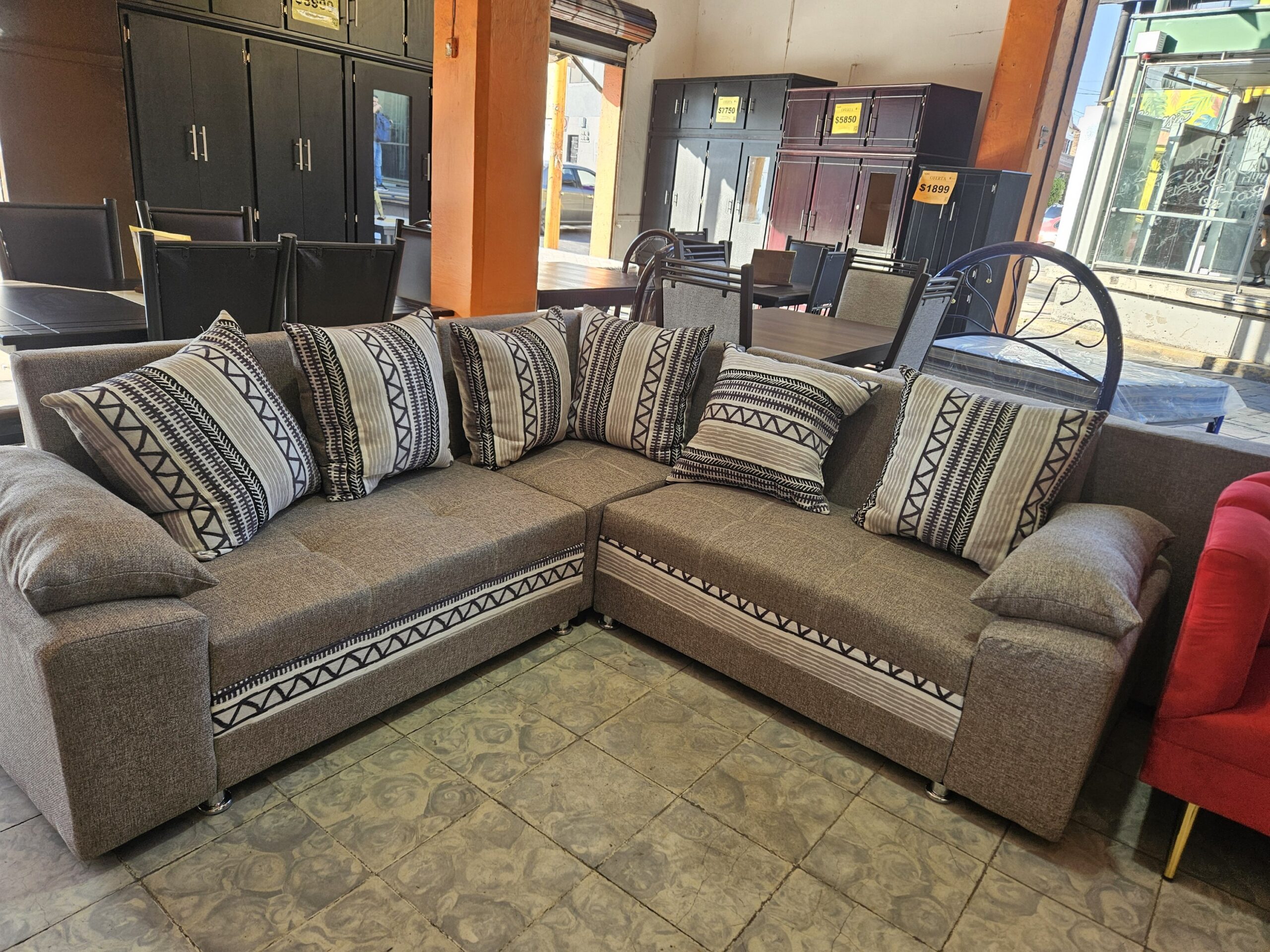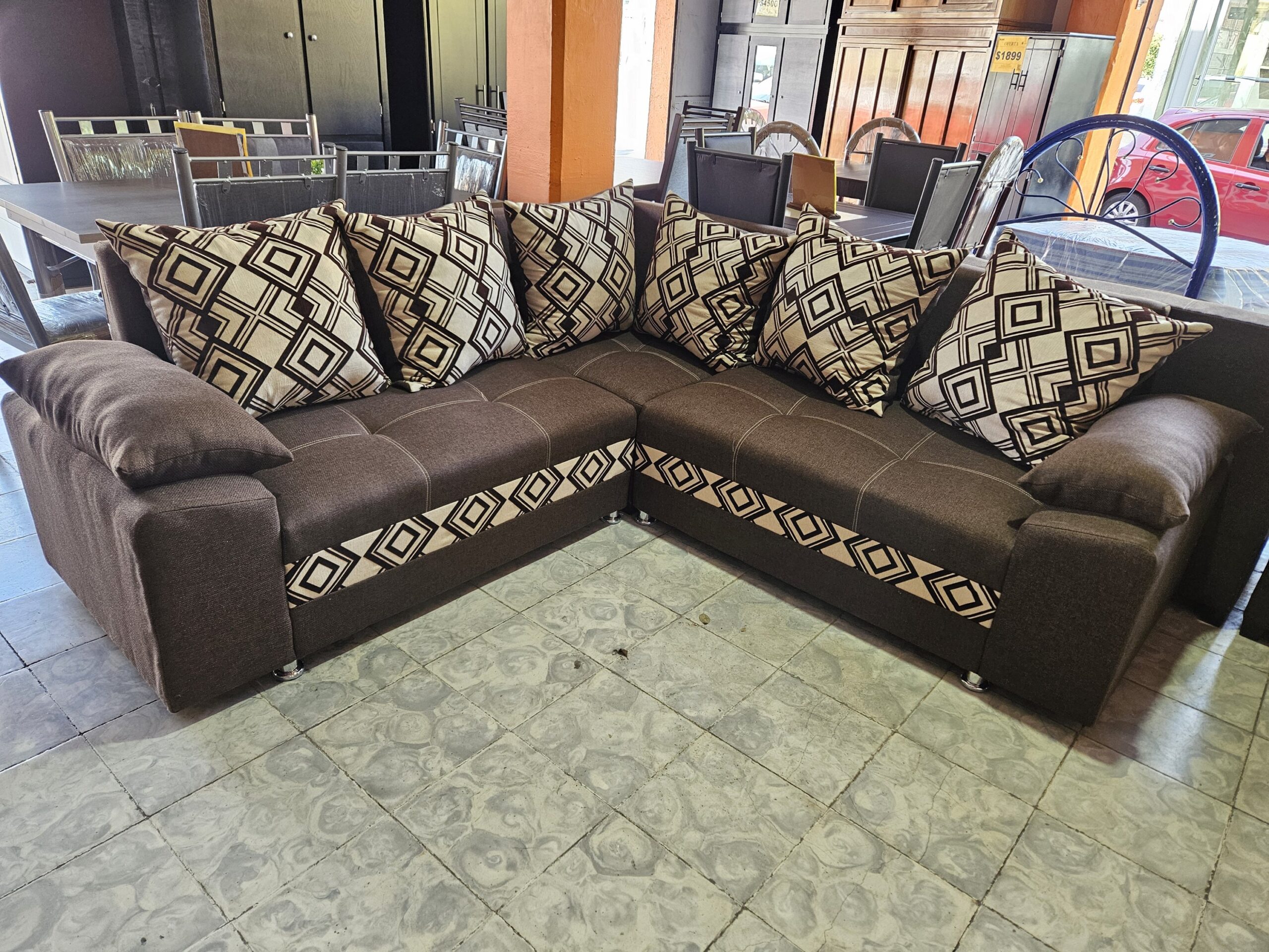 Sala esquinera con seis cojines y cenefa. Color a elegir